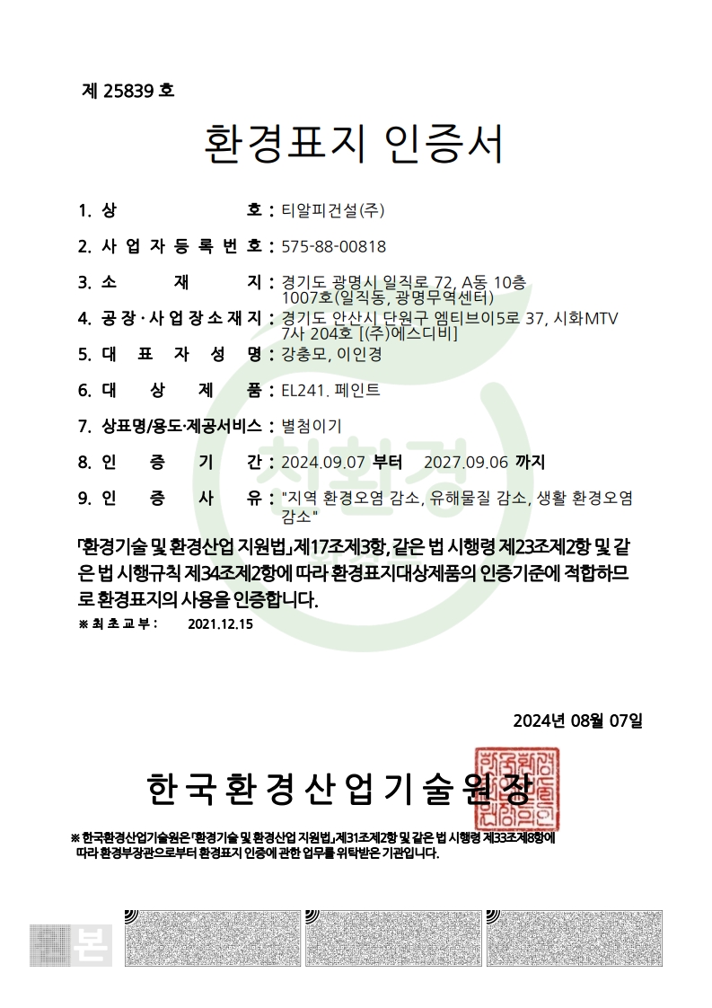 인증서 환경표지인증서(TRIPLEX 비노출우레탄) 페이지 정보 목록 본문 환경표지인증서(TRIPLEX 비노출우레탄) 이전글환경표지인증서(TRIPLEX노출우레탄) 25.06.24 다음글환경표지인증서 (TRIPLEX시트) 25.06.24